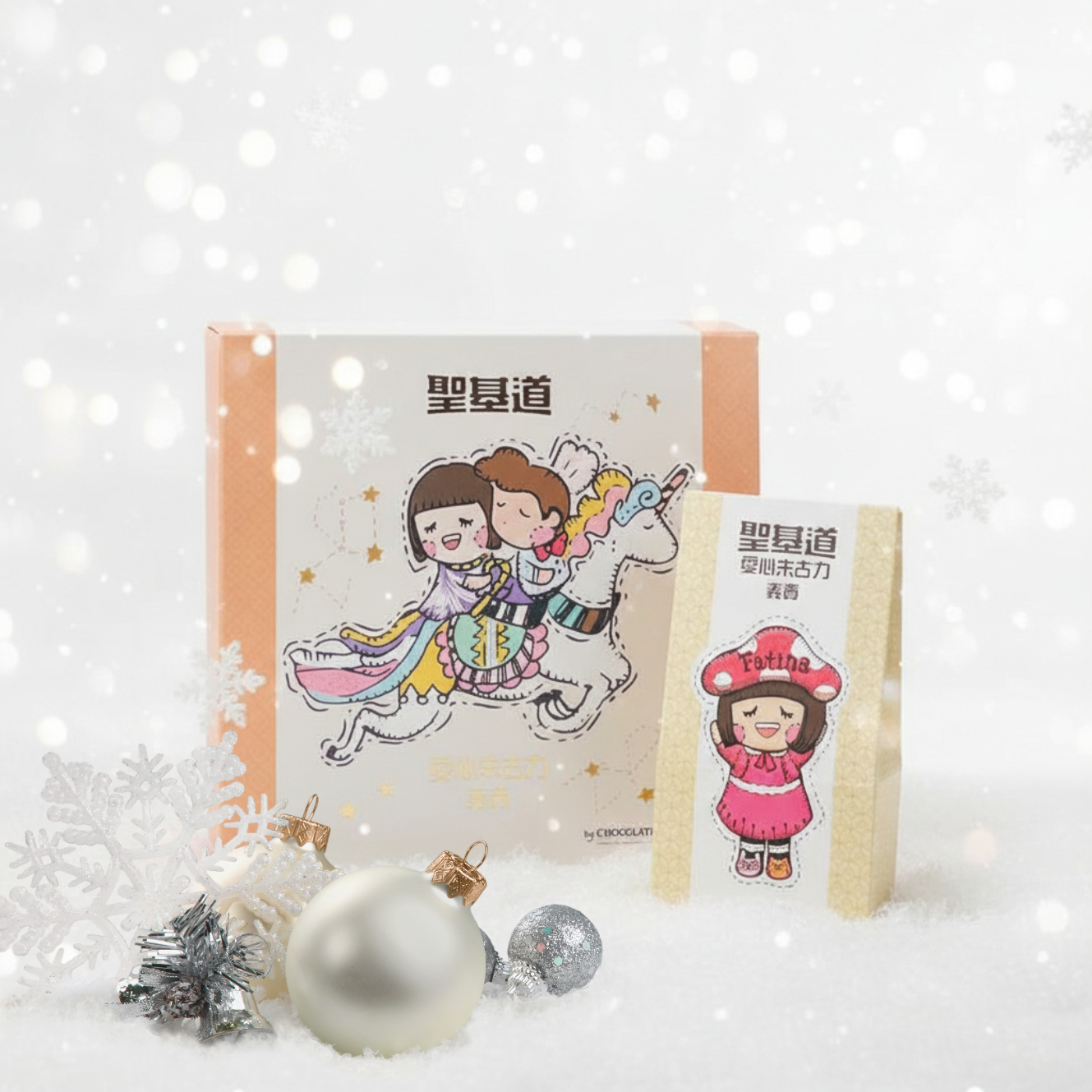 本地創意:兩款愛心朱古力禮盒的包裝由本地插畫家 Chocolate Rain 精心設計。