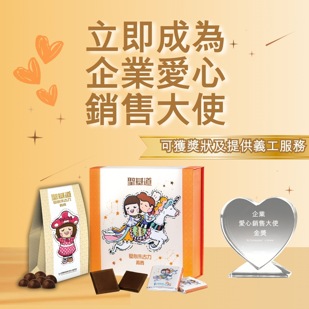 聖基道愛心朱古力是傳遞愛意的送禮之選,適逢售賣的日子橫跨聖誕節、元旦、農曆新年及情人節,在普天同慶的節日購買愛心朱古力送贈親友,或選擇捐出禮盒,由院方安排送贈本院兒童或其他社福機構,同樣能幫助聖基道及其他有需要的兒童,一個行動,「以愛 · 傳愛」,便能為兒童送上心意與希望!義賣籌得的善款主要用以幫助弱勢兒童,支持本院服務營運及發展,促進兒童及青少年健康成長、發展潛能,活出豐盛人生。